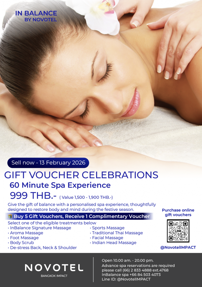 Novotel Bangkok IMPACT - Family & Business trip hotel - Spa Experience Gift Voucher